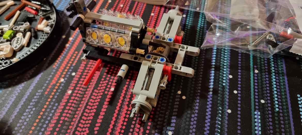 Sett till byggupplevelse är det dessvärre en splittrad sådan. Komplexiteten finns minsann här, då du börjar med undervagnen av bilen och sakta bygger ”uppåt”. Men dessvärre är det en byggupplevelse som aldrig riktigt blir rolig, då det är oerhört plottrigt, och därför inte direkt njutbart. Initialt börjar du att bygga motorn som i sig är coolt, men sedan blir egentligen merparten av bygget slentrianmässigt, och mot slutet vill du mest bli klar med bilen – utan något egentligt sug efter slutprodukten. Detta trots att bygget består av ”enbart” fem faser (sett till medföljande LEGO påsar d.v.s.). Det borde egentligen kännas lätt att riva av, men icke.