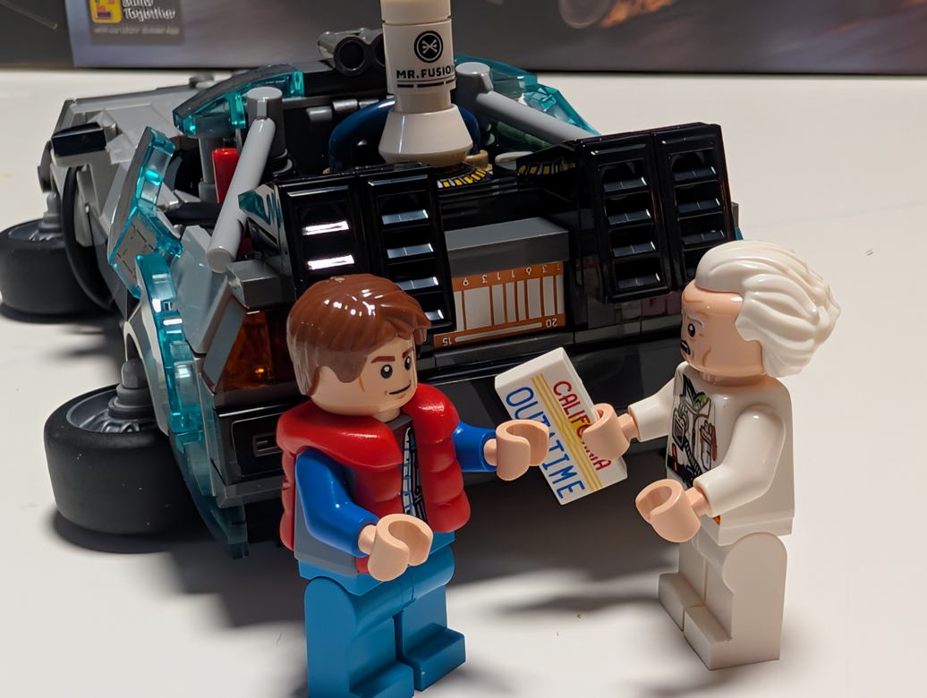 Nu är ju dock detta en speciell Delorean. Nämligen en från min och många fleras barndom. Den som var en av stjärnorna i en av de bästa film trilogierna som någonsin gjorts (och det är helt objektivt), Tillbaka till framtiden. Lego har tidigare släppt set 10300 som är en större version av bilen med möjlighet att bygga alla tre versionerna. Den var dock betydligt dyrare, större, utgången och mer svårplacerad (mina tre tar upp på tok för mycket plats). Men kanske att den ändå är snäppet bättre.