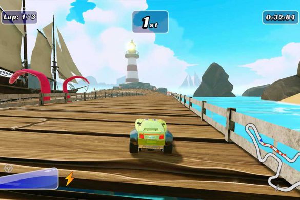 En tydlig brist är sladdningsfunktionen: när du trycker på sladdknappen hamnar du i en sladdanimation som är svår att kontrollera och segar ner dig i 99% av fallen. Sladdning är dessutom en central mekanik, eftersom det är ett av två sätt att få turbo. Det andra sättet är att vara i luften genom att köra på diverse hopp som finns utplacerade på banorna, men det händer så sällan och under så kort tid att sladdning blir den huvudsakliga metoden för att samla turbo. Kort sagt, körupplevelsen i Matchbox Driving Adventures är så basal som den kan bli.