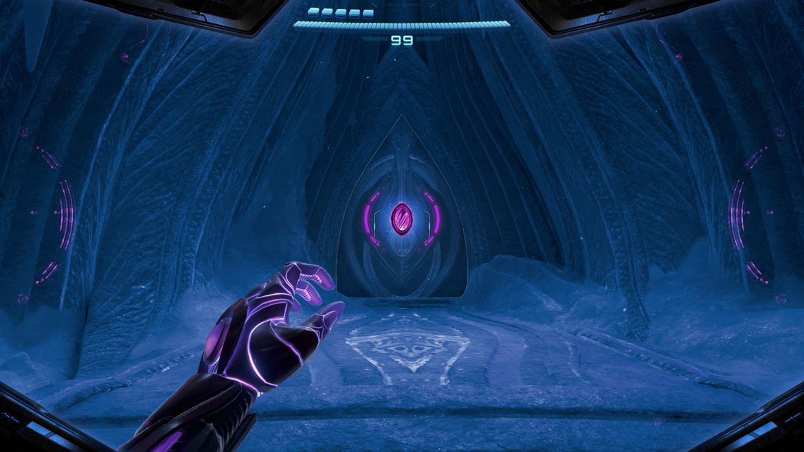 Plottvist! Allt ovan stämmer, det fanns mycket tristess, men när jag nådde det tredje området, som var isvärlden (åtminstone för mig, då jag irrade runt en hel del först), började spelet klicka på ett annat sätt. Metroid Prime 4 är gjort att spelas med fler förmågor – då det öppnar upp världen, utforskandet och pussellösandet. Dels är vissa vapen roligare än andra, men efter jag fick den förmåga som fanns i isvärlden då började jag själv resonera med tempot. Det som initialt kändes urtråkigt, blev alltmer inlevelsefullt. Jag kan inte riktigt sätta fingret på det, men när jag nu äntligen hade lite olika vapen att tillgå – och därigenom kunde börja utforska på riktigt efter hemligheter, så blev det roligare och födde snabbt fram ett bättre driv. Något jag verkligen inte hade förväntat mig efter mina syrliga första timmar.