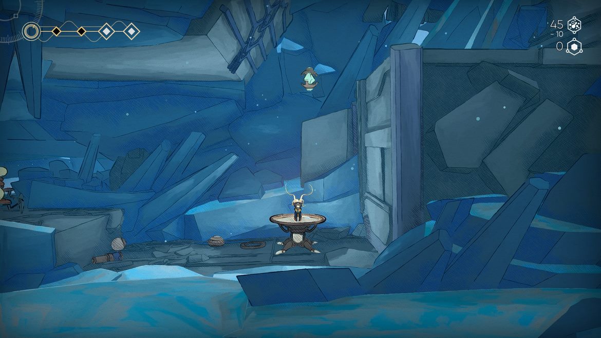 Men det som utgör den stora utmaningen ligger i hur långt Douze Dixiémes har gått i bandesignen för att klämma ur varenda liten droppe potential ur rörelsemönstren. Jag trodde först att Ori And the Blind Forrest tog priset om den mest välplanerade bandesignen gällande detta, men Mio: Memories in Orbit tar nog banne mig detta pris. När du kommer in i de senare delarna av spelet där du har alla förmågor så är vissa av dessa rörelsepussel vara helt galet framtagna, tiden som du håller dig uppe i luften utan att träffa marken kan ibland vara komiskt lång. Detta är även en av de problem jag har med spelet, vissa av de mest utmanande varianterna var obligatoriska för berättelsens fortsättning. Många frivilliga passager som gav extra belöningar hade långt mycket enklare utmaningar än vissa som var krav och svårighetsnivån på dessa går från botten till toppen i vissa segment. Utmaningsbalansen kan därför verka väldigt ojämn i många bitar.