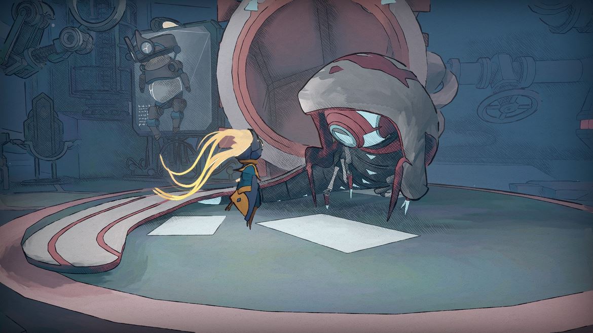 Hur Mio: Memories In Orbit jobbar med hemligheter är rent ut sagt helt genialt. Det kommer en punkt i spelet där du kan ta dig upp och kring längst med både väggar och tak, vilket utökar rörelsepotentialen exceptionellt. Detta kan vi först tro bli väldigt svårt för spelet att balansera, eftersom potentialen är så enorm. Men Mio: Memories In Orbit lyckas med detta. Det var inte förrann senare som jag insåg varför vissa miljöer var designade som de var, varför vissa dörrar och ingångar var så enorma. Det är just på grund av rörelseförmågorna vi samlar på oss längst med spelet, vilket kanske inte låter så revolutionerande. Men jag uppskattar alltid spel som förvånar mig – jag har spelat en hel drös med Metroidvanias och jag kan inbilla mig att jag sätt allt. Emellanåt har jag tänkt ’’nej, men här kan ju ingenting finnas. Det är för långsökt’’ bara för att bli fullständigt motbevisad. Ibland hittade jag förklaringar till bakgrundshistorien, värdefulla mods eller bara roliga små interaktioner. Mio: Memories In Orbit belönar dig som är nyfiken och flitig.