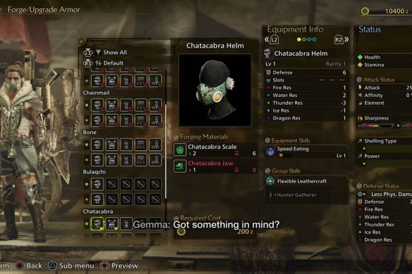 Till råga på allt är designen på vapnen och rustningarna otroliga. Du kan se exakt vilket monster de kommer ifrån och varje vapen eller rustning ser helt olika ut beroende på vilket träd du använder. Vissa svärd ser ut som värjor, vissa svärd som Kukri-knivar eller yxor. Mångfalden i design är uppriktigt imponerande då detta är fallet för alla 14 vapnen, nästan i alla fall. Vissa är mindre varierande tyvärr, vilket gjorde att jag drogs bort från dem. Rustningarna har samma fenomen till sig. Hur barockt det än är känns det verkligen av att rustningarna är gjorda av de monster du besegrat. Jag kan bara tänka mig hur det känns för ett monster att bli ihjälslagen av en klubba gjord av dess kusin samtidigt som angriparen också bär deras mor som jacka.