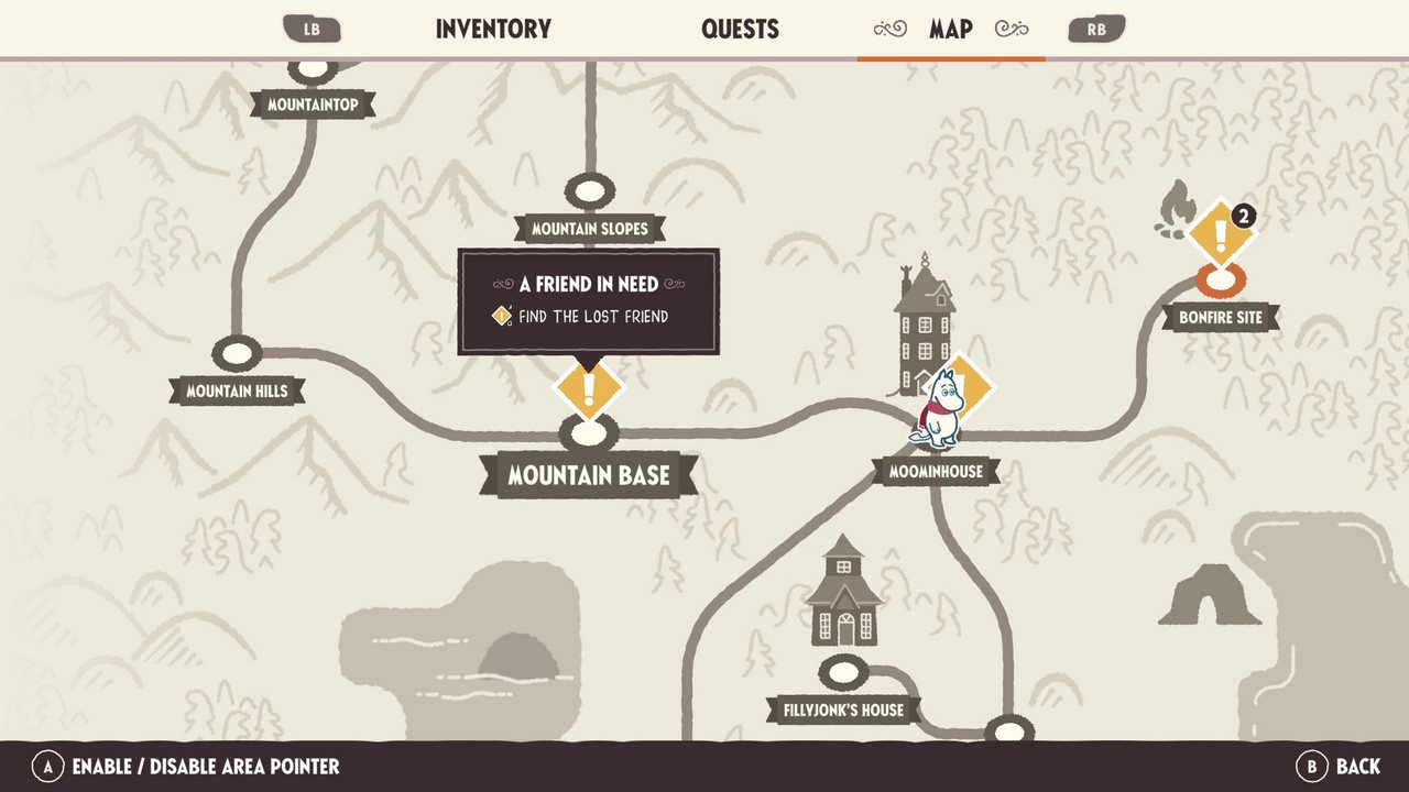 Vissa karaktärer lyser med sin frånvaro, men så var det även i Snusmumriken: Mumindalens melodi. Ett bra beslut på det stora hela, som lämnar andrum åt de kära figurer vi ändå får ta del av. Det känns som att Hyper Games fick en fin liten hit med Mumindalens melodi. Med det kom större ambitioner och fler förväntningar från alla håll. Kanske att de stressade igång produktionen på en uppföljare med en bra premiss, men utan en tydlig plan. Snart upptäckte de att vad de hade inte riktigt var tillräckligt för ett helt spel. Sidouppdrag (som fanns i föregångaren också, men som var mer intressanta) och långa vandringar från A till B, samt frustrerande blockader fick fylla ut tomrummen. Jag skulle inte bli förvånad om en del av det ändå vore sant.
