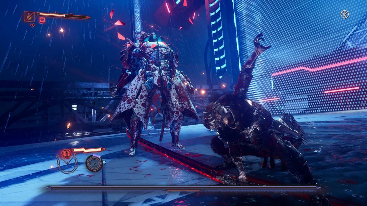 Som Yakumo har vi först och främst ett set med vapen – två svärd i vardera hand. Dessa svingar han runt med blixtfart, de audiovisuella effekterna är intensiva, rivande och slafsiga. Om vi snackar om känsla för timing gällande rörelsekombinationer och hur varje rörelse följer varandra så genomför Ninja Gaiden 4 detta till punkt och pricka. Vartefter berättelsen fortsätter får du nya vapen som ändrar dina rörelser på ett mekaniskt och visuellt tillfredställande sätt. Jag hade dock velat ha lite fler än bara fyra, samt att hitta några extra vapen som inte är knutna till huvudberättelsen ger alltid den där lilla extra kryddan. Varianterna går jag inte in på detalj av spoilerskäl, men utöver dubbla svärden varierar sig detta till ett spjut, stav och distantvapen.