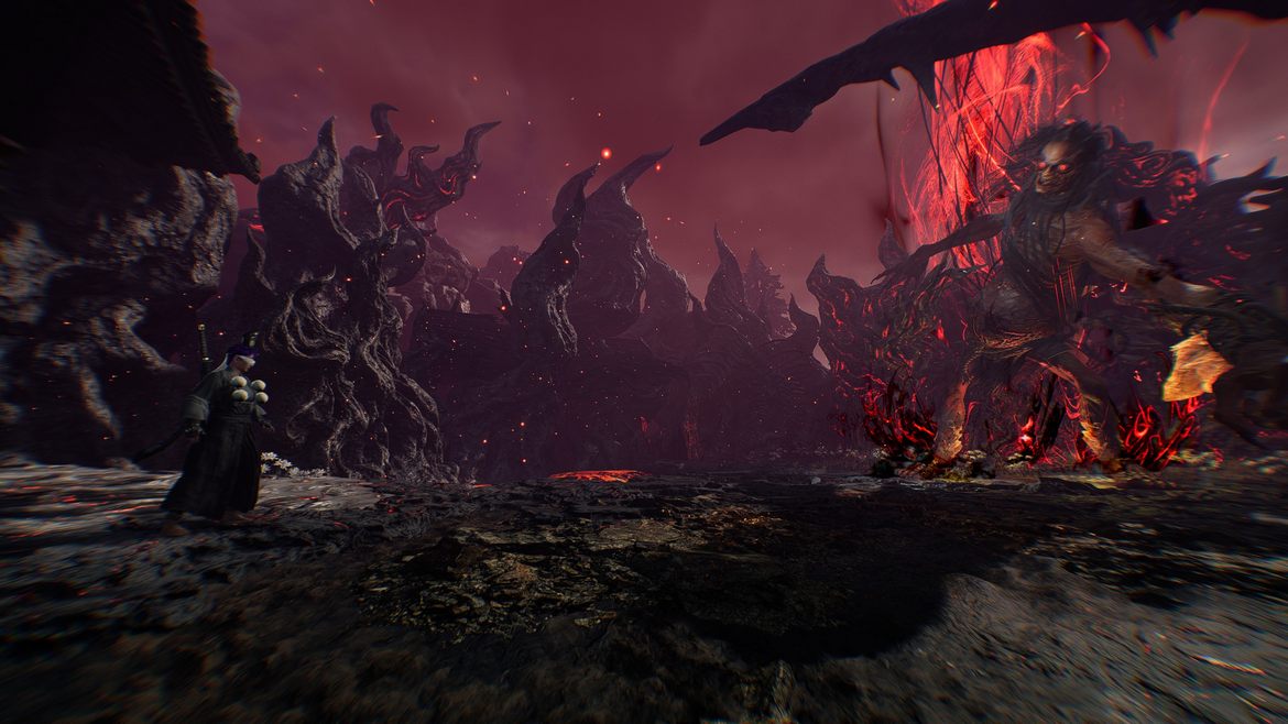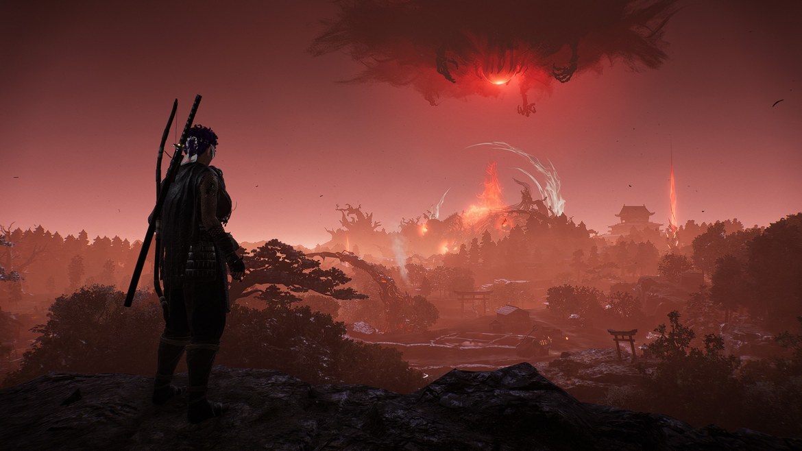 När vi sedan springer upp för den första kullen händer något som verkligen sätter tonen för resten av spelet. Introskärmen tonar in och texten Nioh 3 visas över skärmen. Framför oss breder en enorm värld ut sig, och ovanför slottet i fjärran svävar ett skrämmande fenomen som liknar en gigantisk flygande demon, även kallad The Crucible. Det är detta hot Tadakatsu varnade för – källan till Yokais framfart i området och en ständig påminnelse om vad som står på spel. Detta är i stora drag inledningen på äventyret.
