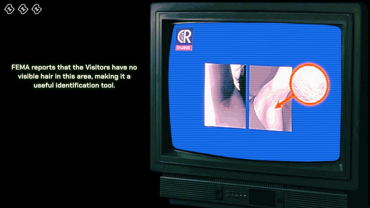 Om det inte är tydligt än så, är paranoia nyckelordet som beskriver No, I’m Not Humans tematik bäst. Vad driver människor till att göra vad de gör i särskilt utsatta situationer? Vad är våra sanna färger när det kommer till krita? Att infon vi får från media blir allt mer desperat och att myndigheter tar sig fler och fler friheter ekar en inte alltför långt gången period i vår egen tid. Nu skulle jag inte säga att myndigheter i sig generellt betedde sig på det viset de gör här, det ekar ändå på ett obehagligt och tillräckligt bekant vis – särskilt medias konspiratoriska och ‘alternativa’ idéer. Allt detta är väldigt intressant att ta del av med en fortfarande färsk pandemi i backspegeln. Väcker tankar som få spel gjort innan på ett så direkt vis.