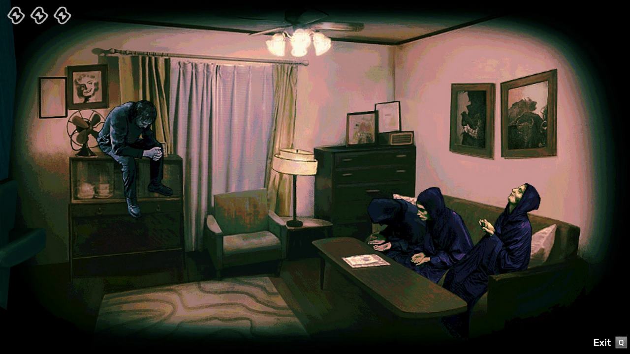 Vad är det för något utanför vår kontroll som kan ändra en omgång helt? Framförallt när myndigheterna (FEMA) knackar på och ber oss överlämna en eller två av våra skyddslingar. Utöver att ställa vår moral på prov så fungerar de människor vi tagit in lite som en typ av livmätare. Så länge de alla är människor är vi aldrig ensamma, för när vi väl är det, eller huset i princip tagits över av “besökare”, knackar en i synnerhet otrevlig rackare på. En lång och gänglig man med ett överdrivet brett leende. Han dyker upp med jämna mellanrum och hör sig för om hur det står till med oss. Om vi är ensamma, ja då är den omgången så gott som över. Om vi inte är ensamma lämnar han oss i fred – tills vidare.