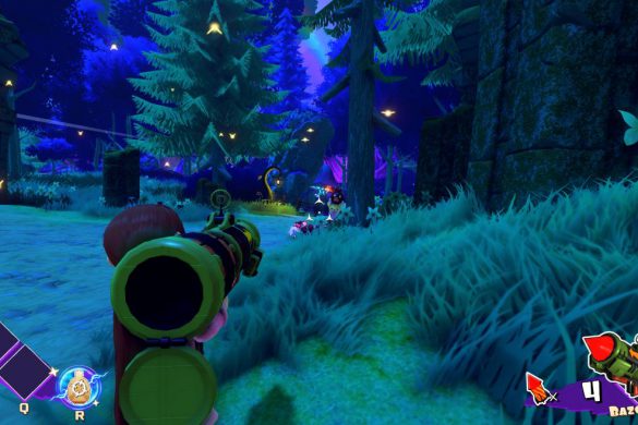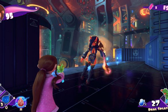 Onirism blandar tredjepersonsskjutande, plattformshoppning, utforskning och pussellösning i en vild mix. Jag kan växla mellan ett nära över-axel-perspektiv och ett mer traditionellt tredjepersonsläge när som helst, vilket gör striderna flexibla – och när precision krävs är det enklare att sikta. Carole använder sitt paraply som närstridsvapen när ammunitionen tar slut, men har också tillgång till en enorm arsenal av fantasifulla vapen med allt från bubbelkastare och leksaksgevär till fyrverkerikanoner och laserpistoler. I berättelsen kan vi tolka att allt som händer har med Caroles egna fantasi att göra, ungefär som Nes klassikern Little Nemo the Dream Master, och i det spelet märks det att det är ett barn som fantiserat ihop det. Nemo kastar godisar på fiender och kan förvandla sig till olika djur men i Onirsim känns inte vapnen som något ett barn skulle hitta på i sin dröm.