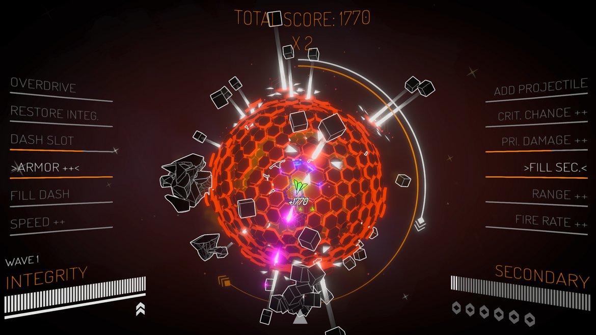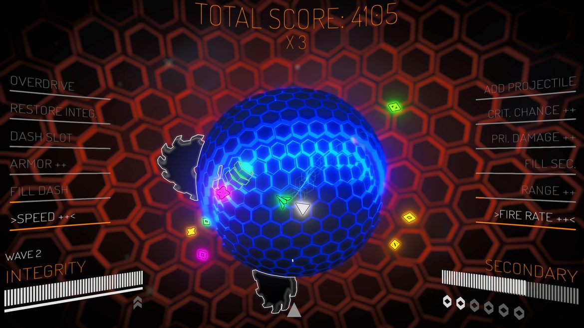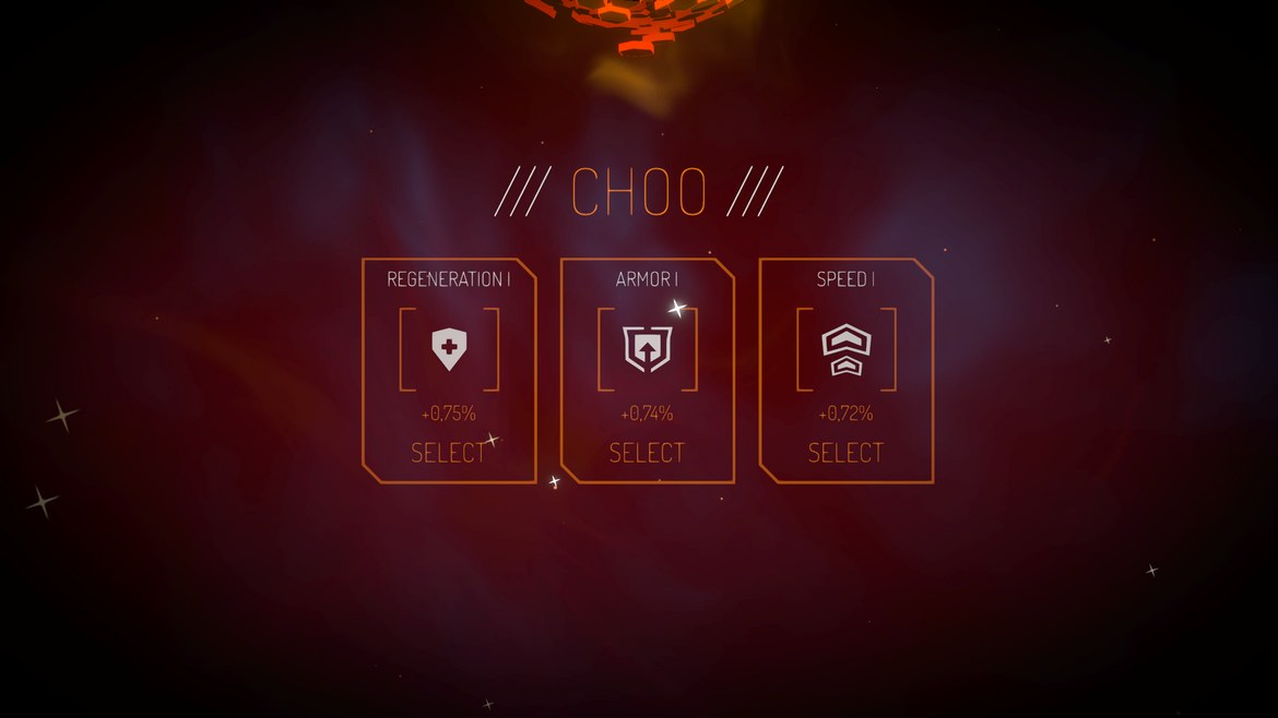 Vad är det då för uppgraderingar? Du har dina vanliga varianter; hur mycket sköld ditt skepp har, hur mycket skada, hur fort du skjuter, hur mycket liv du har et cetera. Dessa finner du i dina ”Tech” uppgraderingar, alltså det du kan låsa upp för erfarenhetspoäng. En stor fördel är att du kan återställa dina uppgraderingar och spendera dem på andra punkter, om så önskas, detta gör att spelaren kan anpassa spelstilen någorlunda. I omgångarna finner du uppgraderingar som ger dig en lägre procentuell ökning på, till exempel, skada, samtidigt som den drar av din totala mängd liv. Varje uppgradering känns lite som att ge och ta, vilket skapar ett pussel där du välja vad som ska prioriteras. Många uppgraderingar har också nivåer, du kan här lägga på tre av varje, och ångrar du dig, eller är i behov av poäng har du möjlighet att sälja dem. Det finns vissa uppgraderingar som är ”måste ha” varianter; en plattform som läker dig, eller ett torn som autoskjuter på ytan.
