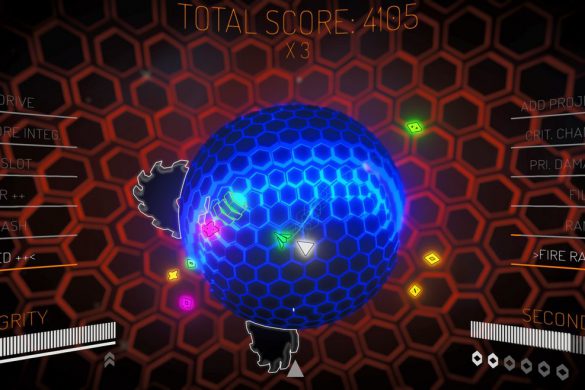 Musiken är dock riktigt fet, och när du befinner dig på insidan av planeten, även kalled “Inverse”, spelas musiken baklänges. Det är en skön techno-beat som körs på repeat, som diskret smyger sig in i bakgrunden – inget som tar över, utan det ligger nästan undangömt bakom alla andra ljudeffekter som finns. Ljudeffekterna är dock charmiga, och påminner en del om ”bleep-blop” ljud som återfinns i spel från NES-eran. Rent visuellt blir det väldigt plottrigt på skärmen, till den punkt att jag inte kunde utläsa vad som pågick och jag fick huvudvärk av alla starka neonfärger. Spelet i sig upplevs inte som ett PC-spel för fem öre, utan det känns mer som ett mobilspel. Det är svårt att avgöra exakt vad som gör att det känns som ett mobilspel, jag ser bara framför mig hur jag kan spela det på en mobilskärm utan större problem. Det skulle vara fullt möjligt att byta ut handkontrollen mot en pekskärm utan större skillnad i spelet.