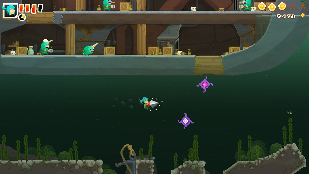 2024 har sett en hel drös storspel; där enorma världar, utforskande och stor dramatik varit några av dess brännpunkter sinsemellan. Pepper Grinder däremot borrar sig igenom sådana breda koncept, med ett enkelt upplägg; låt borren snurra, och tempot fortskrida. Pepper är mycket riktigt tjejen vi bekantar oss med, när hon snöpligt nog ser hela sin piratskatt bli snodd rakt framför näsan. Kan inte en ärlig pirat få någon rest och ro alls utan att behöva se ett gäng bedrövliga turkosa varelser(!), samt en mystisk person sno ens rikedom! Tråkigt nog för henne faller hon nerför ett nedrans stup, och hinner precis flänga händerna kring en märklig manick som sitter i bergsväggen, innan hon försvinner ner i djupet. När hon väl kommer till sina sinnen, då är jakten på skatten ett faktum. Tack och lov då också att denna makalösa manick visar sig vara en otroligt behändig borr, som tar sig genom land, vatten och materia – och en och annan skjutglad fiende.