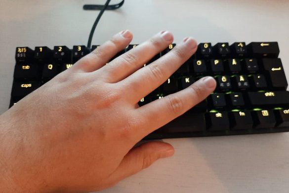 Som jag nämnde tidigare märkte jag inte att det saknades tangenter, vilket på ett sätt kan ses som bra. De har lyckats bra med att få plats med alla tangenter på olika sätt på en väldigt liten yta. Det innebär dock att mina fingrar krockar en del och jag kommer åt vissa tangenter vid fel tillfällen när jag skriver, men det är väldigt bekvämt att skriva, på – sin storlek till trots. Det är Razers linjära optiska brytare som används och de är dels väldigt tysta och reagerar dessutom snabbt på när en tangent trycks ned. Man behöver egentligen knappt trycka ner en tangent för att få respons. Jag testade att spela World of Warcraft, Neon Abyss samt lite Among Us och det fungerade bra att spela. Det går att välja Clicky Optical Switch om man istället vill ha det, vilket ger tangenterna lite mer motstånd men de kan då låta lite mer i jämförelse med de linjära. Det är en smaksak vad man föredrar med prislappen förändras inte om man väljer den ena före den andra.