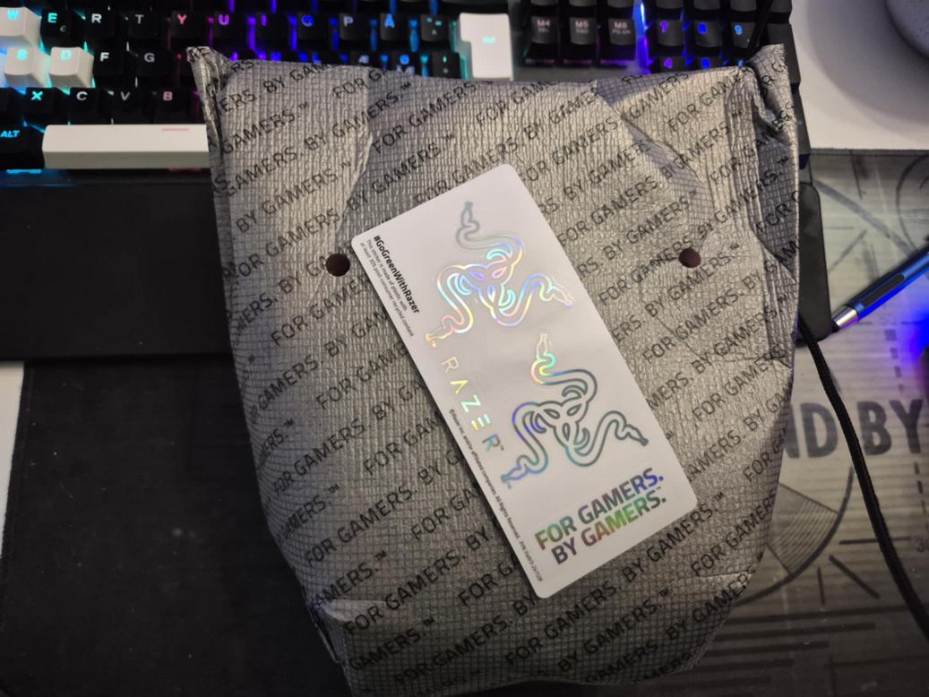 Innan vi ens hunnit ta hörlurarna ur kartongen märks det att Razer har lagt ner tid på presentationen. Det är en förpackningsdesign som syftar till att skapa en positiv första kontakt och det är en känsla av lite lyx ändå när jag öppnar det rosa paketet. Svart och silver möter mig, tillsammans med ett holografiskt ark av klistermärken. Hörlurarna är inkapslade i en skyddspåse och känslan när jag tog ut dem och såg dem för första gången kan bara beskrivas som fånig lycka. Det visuella uttrycket är genomtänkt in i minsta detalj, och det står snabbt klart att Razer vill att detta headset ska definieras lika mycket av sin form som av sin funktion.