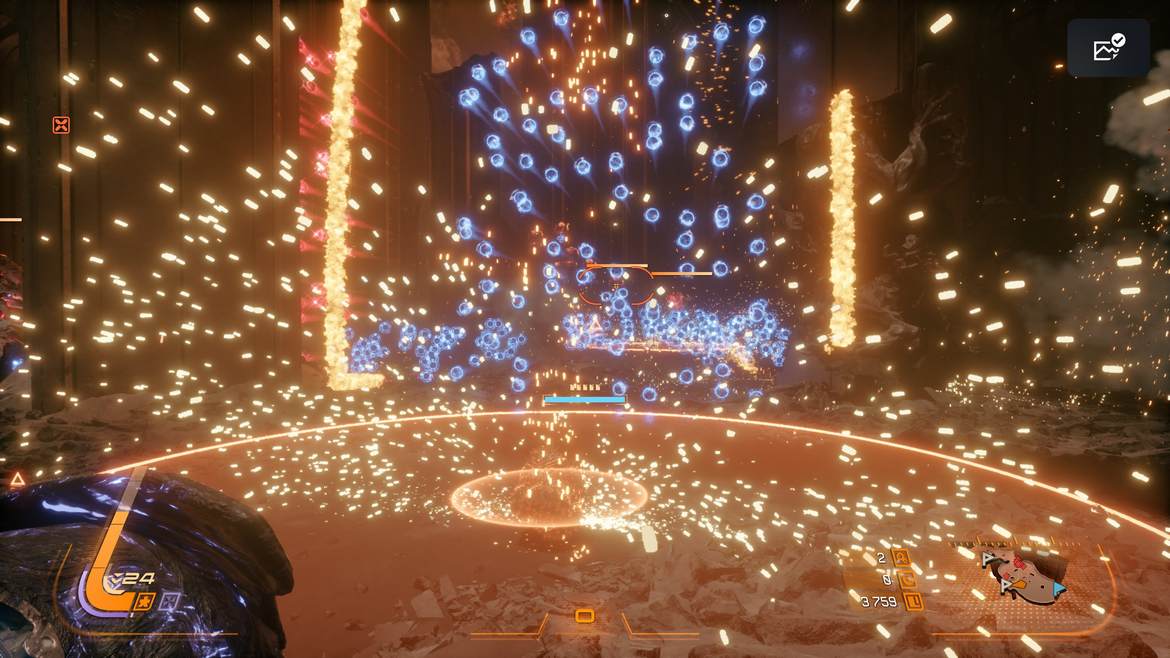 På ytan följer SAROS en ganska klassisk roguelite-struktur. Du startar i basen, väljer ett uppdrag och ger dig ut i områden som delvis slumpgenereras inför varje runda. Kartornas struktur känns ofta bekant efter några timmar, men vägarna, belöningarna och fiendemötena förändras tillräckligt mycket för att varje expedition ska kännas osäker. Spelets loop är farligt beroendeframkallande. Du rör dig genom arenor fyllda med fiender, samlar resurser, hittar nya vapen och väljer mellan att spela säkert eller pressa längre in i farligare områden för större belöningar. Och nästan hela tiden fungerar det briljant.