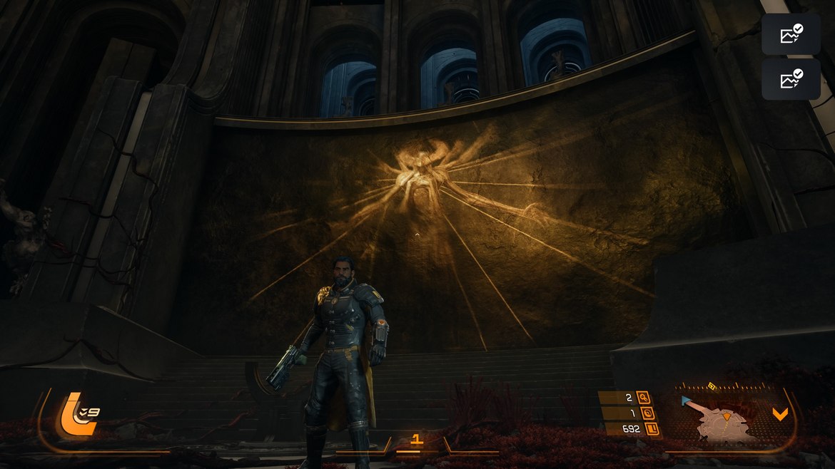 En av spelets starkaste idéer är hur progressionen vävs ihop med berättelsen och världen. Varje gång du dör återvänder du inte bara till basen för att börja om. Du återvänder till en koloni som långsamt håller på att förändras. Människor beter sig annorlunda. Relationer bryts ned. Besättningen känns mer paranoid för varje expedition. Det är som om själva planeten arbetar sig in i deras huvuden bit för bit. Samtidigt börjar även du förändras. Det finns något nästan obehagligt i hur snabbt du accepterar Carcosas logik. Först känns solförmörkelserna självmordsaktiga. Sedan börjar du aktivt söka upp dem. Först undviker du de farligaste områdena. Sedan springer du rakt in i dem för chansen att hitta bättre utrustning eller fler resurser. Det blir som ett beroende.