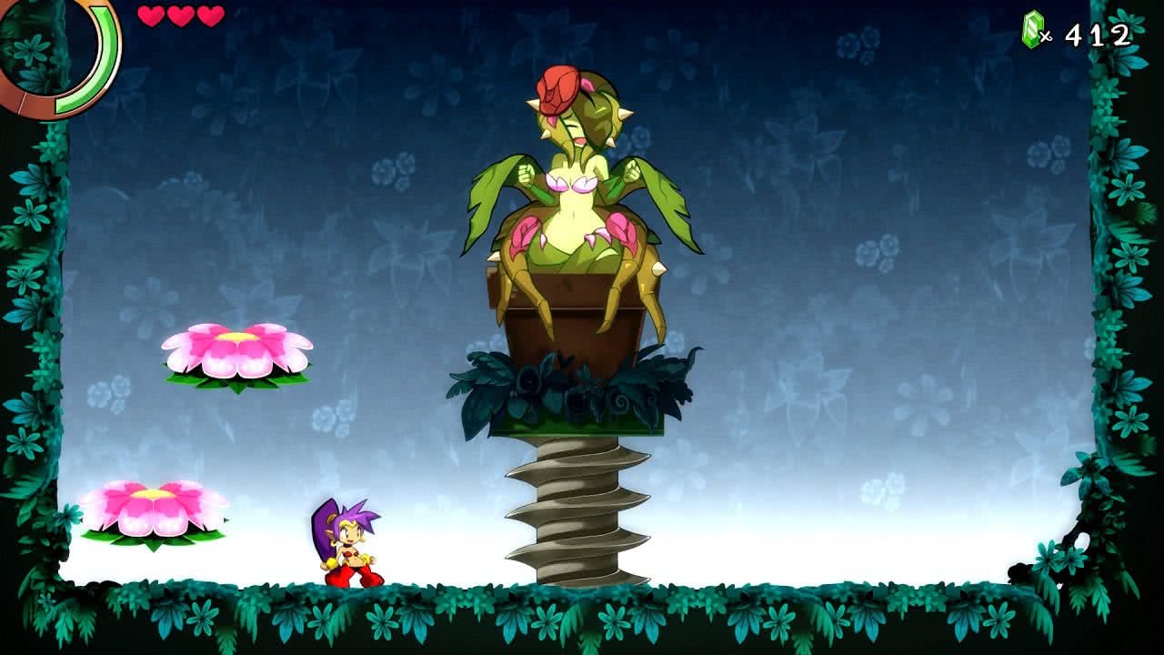 Shantae och hennes vänner har åkt till en ö för lite semester, och de får bo gratis om Shantae är med i ett uppträdande tillsammans med ett gäng andra halv-andar. Men lugnet varar inte länge, Shantae hinner inte mer än till repetitionen innan allt blir svart, och när lyset tänds igen så är alla halv-andarna borta, förutom just Shantae. Hon vill såklart veta vad det är som har hänt så därför ger hon sig ut på jakt efter dem runtom ön, men det finns en hel del hinder i vägen. Till exempel så dyker piraten Risky Boots upp för orsaka trubbel, är det möjligen hon som har andenappat alla de andra? Nope, hon vill bara ha tag på en skatt, men hon berättar för oss att det finns sju sirener som bor i havet, och att det är de som har tagit halv-andarna. Jag gillar upplägget för storyn, det är en enkel premiss som byggs upp allt eftersom med en del humor.