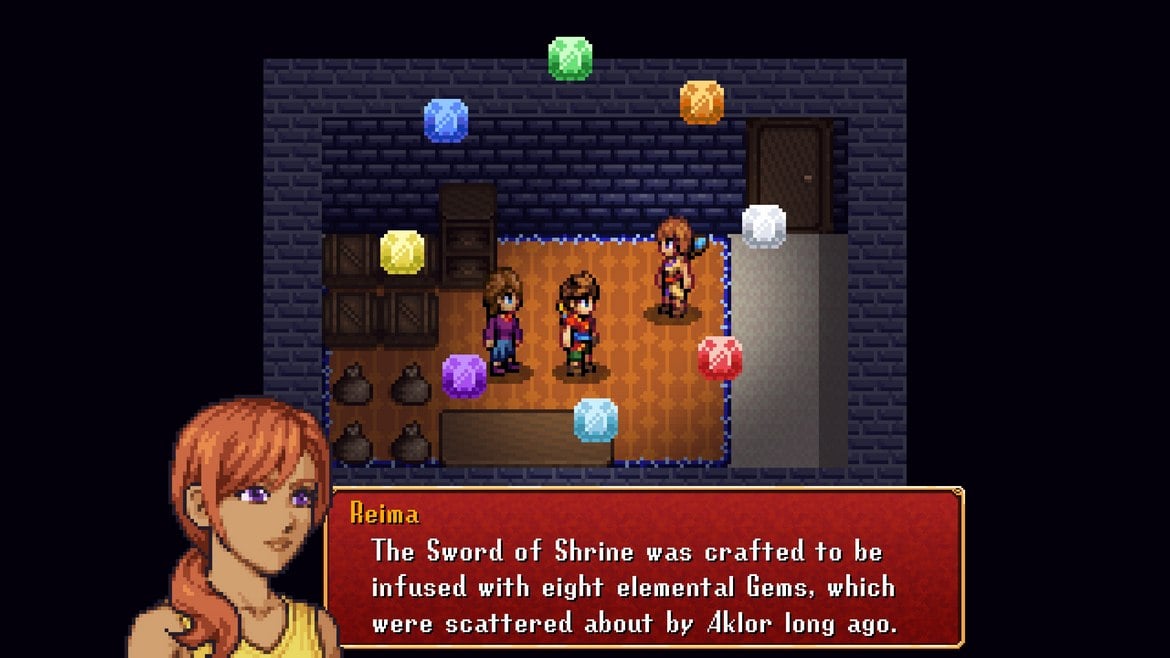 För länge sedan besegrades Aklor med det magiska svärdet Sword of Shrine. (Gör inte som jag och förväxla Aklor för komikern Kodjo Akolor. Det är bara namnen som är lite snarlika.) Svärdets kraft låg i dess 8 Elemental Gems som vid stridens slut spreds över världen. Sedan dess har det förvarats i byn Yuril i hopp om att det skulle få vila för evigt. Dock så återuppstår Aklor och hans mål blir att förgöra det enda som kan förgöra honom. När vi i godan ro är ute och leker blir svärdet plötsligt stulet. Dags för tjuvjakt! Efter en stund är tjuven inträngd i ett hörn och efter ett kort slag är det över. Då det visar sig att tjuven vid namn Reima vill också besegra Aklor, så nu bildas det team vi kommer spela som i detta äventyr.