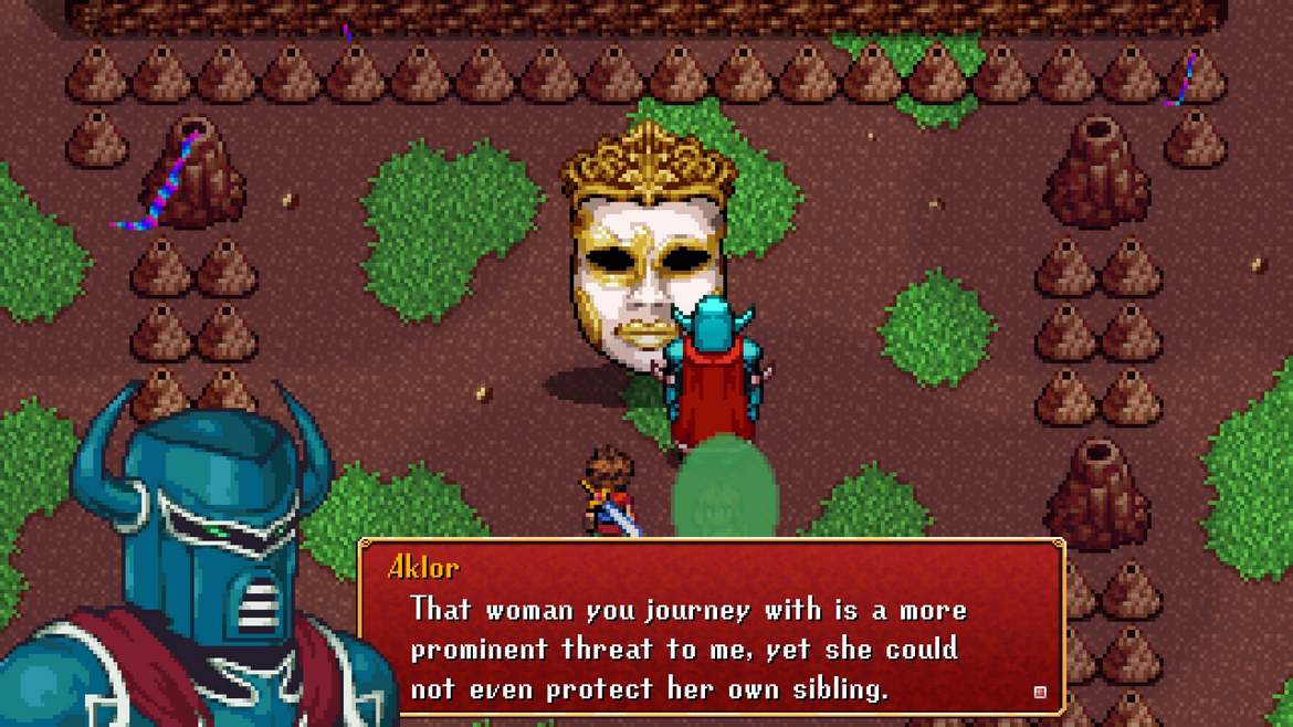 Det är inte bara mot vanliga monster jag kämpar utan vår protagonist Rio kämpar även med sig själv och sin dåliga självkänsla. Detta manifesterar sig inte minst efter att Aklor vid en tidig sammandrabbning förklarat för honom just hur patetisk han är. Det är inte bara fysisk styrka vi kommer att behöva utmed spelet utan även vår inre styrka och tillit till oss själva. Den inre kampen får vi dock bara följa i dialog-format.