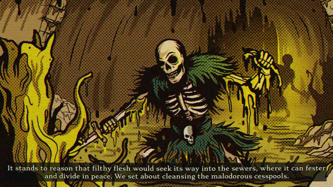 Skull Horde är absolut inget undantag och utvecklar Vampires-formeln ytterligare. Här spelar du en jättearg dödskalle som vill ha hämnd på sin egen kropp som fick liv och begravde sitt eget huvud… Storyn är sällan dessa typer av spels starka sida. Hur som helst, den största skillnaden här är att du bygger upp en armé som krigar åt dig istället för att du ska göra grovjobbet. Du kan likna spelet vid en dungeon crawler som använder sig av slumpade banor, uppgifter och fiender.