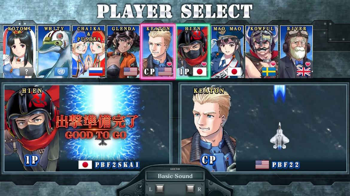 Organisationen har denna gången återvänt med speciella supervapen i sitt arsenal som de använder för att ta kontroll över världens militära vapen. Himlens riddare, det internationella hemliga räddningsteamet, Project Blue antar utmaningen och nu utmanar åtta modiga stridspiloter med olika egenskaper fiendeorganisationen som hotar vår värld. Där har ni handlingen i sin helhet, gott folk. Det är ju inte direkt Sagan om Ringen nivå när det kommer till story men det har aldrig varit spelseriens fokus. För den oinvigde är Sonic Wings Reunion en vertikal shooter där spelet börjar med att spelaren får välja en eller två spelare och därefter svårighetsgrad. De olika valen är easy, normal, hard och very hard. Efter detta får spelaren välja sin karaktär.