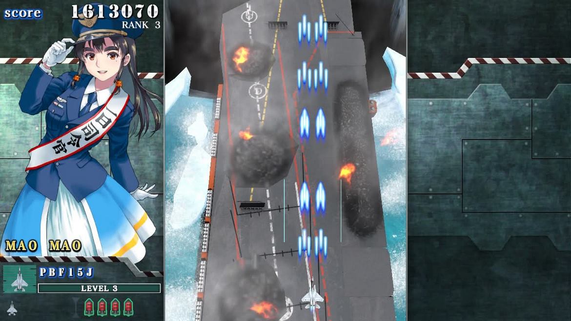 När spelet sätter igång befinner sig ditt plan längst ner på skärmen samtidigt som vågor av fiender störtar ner från alla håll. Det verkar inte attackera i några strikta formationer av något slag utan allt känns ganska så slumpartat. Det blir lite bättre när spelaren når en av slutbossarna. Då krävs det flera etapper innan striden är vunnen, men bossarna saknar i stort sett intressanta mönster som spelaren måste upptäcka för att kunna besegra dem. När du skjuter ner lite större fiender dyker svävande patroner upp på skärmen. Dessa är dina vapenuppgraderingar och när du plockar upp dessa ökar din eldgivningskraft med ett steg. Spelet i sin helhet består av åtta banor och en bonusbana som alla är aningen för korta och de fyra första väljs slumpvis ut för spelaren.