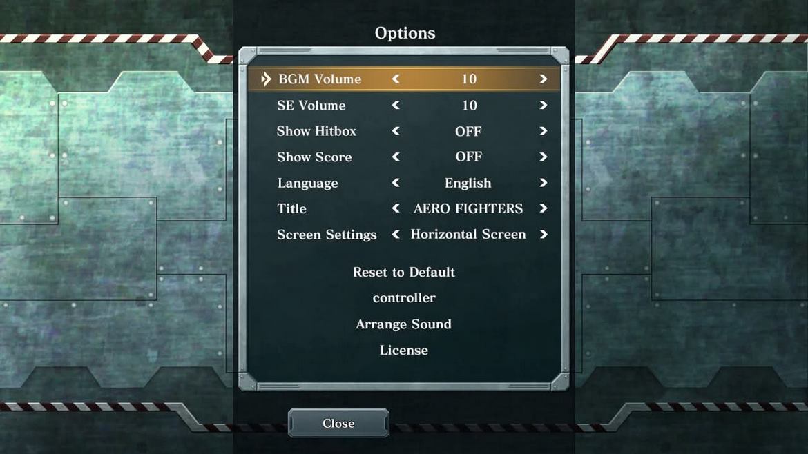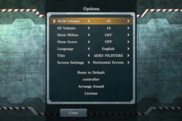 När det kommer till Options-menyn kan spelaren lyssna på alla låtar, ändra så att poängen för allt som händer i spelet syns i en box vid sidan om och att Sonic Wings Reunion kan spelas i sin vertikala originalupplaga, det så kallade Tate-läget. Ordet ”tate” (たて) kommer från det japanska språket och betyder vertikal. Undertecknad hade jag tyvärr ingen möjlighet eller lust att ställa min bräckliga 65” 4K TV vertikalt för att testa detta läge.