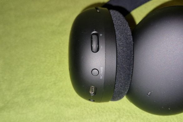 Men om vi ska kolla på vad för funktioner och knappar vi finner på öronkåporna finns det lite här att hålla koll på. På den vänstra kåpans baksida finner vi volymreglaget och nedanför knappen för ANC/omgivningsljudläget. På ovansidan bakom huvudbandets fäst finner vi knappen för att stänga av mikrofonen, den har ett klickigt ljud när du trycker till på den och det lyser upp rött på mikrofonen när den är avstängd. Där finns också USB-C-laddningsport, 3,5 mm-uttag samt kontakt för bommikrofonen.