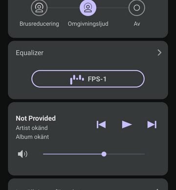 På mobilen heter appen Sound Connect och du får tillgång till EQ-profiler eller göra egna. Du kan välja ANC eller omgivningsljudläge. Samt se batteritid kvar innan du behöver ladda igen. Det är även här som du skannar in dina öron för att göra ny ljudprofil. Det är en enkel app men inte så mycket som finns här, men det som finns räcker gott och väl för mobil.