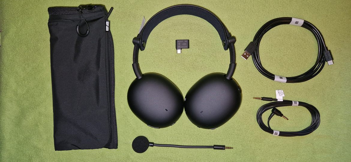 Utöver själva headsetet får vi med en USB-C till USB-A-kabel, en USB-C-dongel, en 3,5 mm-kabel, en avtagbar bommikrofon och en mjuk förvaringspåse.
