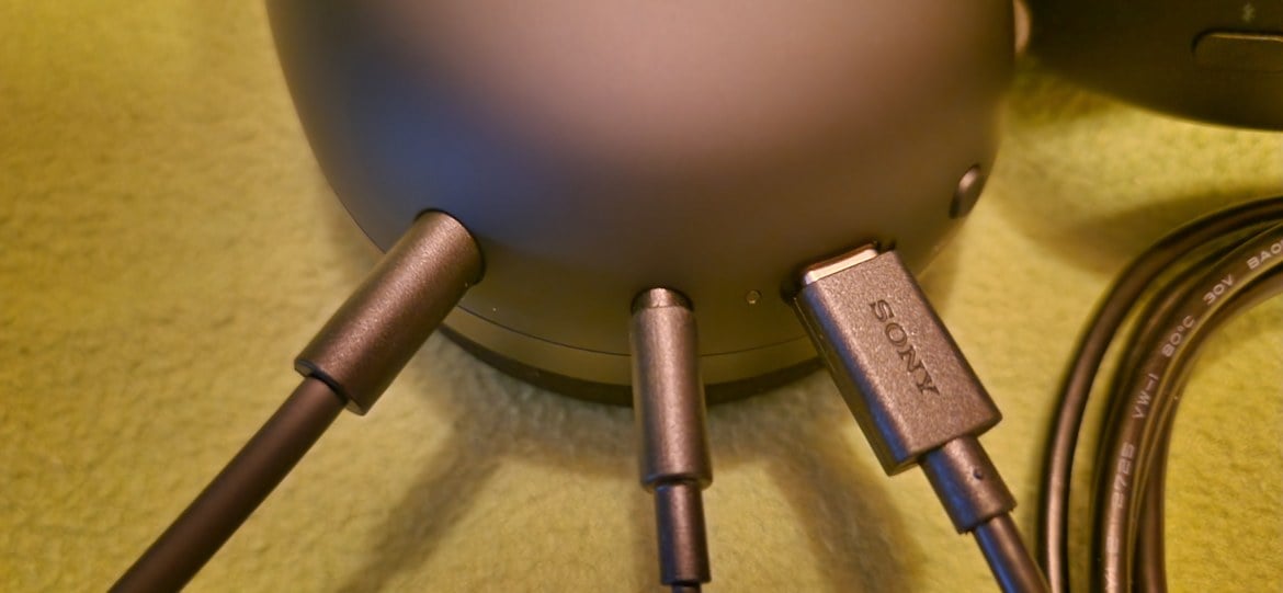 På Playstation 5 är det dongeln som du får plugga in för att kunna lyssna i lugn och ro utan att störa grannarna mitt i natten. Medan på PC kan du använda dongeln (först måste du byta på den från PC till Konsol genom en knapp) eller slå igång blåtand via ett knapptryck på den höger kåpan baksida. Men även om det fungerar med blåtand körde jag nästan alltid via dongeln. Bara plugga in, växla mellan PC och konsol – och vips, du är igång igen.