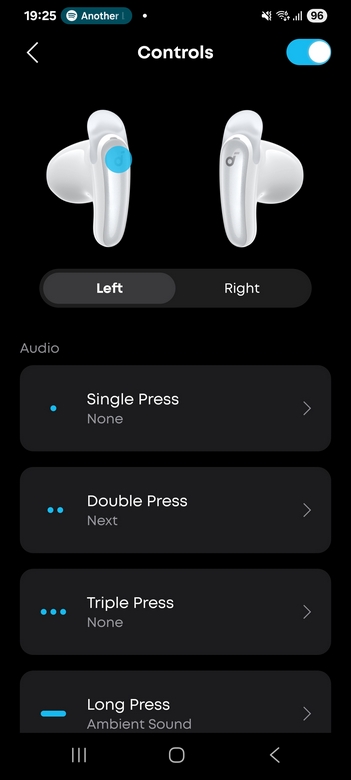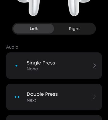 Touch-kontrollerna på lurarnas sidor är responsiva – nästan för responsiva. Det är väldigt lätt att råka pausa musik eller trigga andra funktioner när du justerar lurarna i öronen. Som tur är går detta att lösa i appen, där varje hörlur kan anpassas individuellt med enkel-, dubbel- och trippeltryck eller långt tryck. Med lite finjustering blir användningen därför smidigare. Det är dock irriterande när du väl ska justera hur de känns i öronen – och du varje gång får ett litet ’beep’-ljud för att du kommer åt touch-knapparna. Förvisso ändras inget efter du ställt in de till att exempelvis gälla enbart dubbel- eller trippelklick, men det är ändå tråkigt.