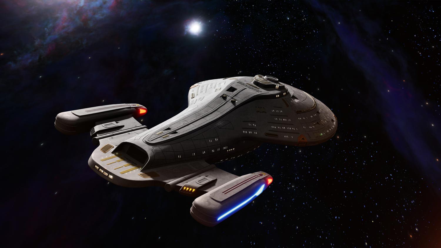 Spelets berättelse börjar med att rymdskeppet Voyager under kapten Janeways direktiv blir träffat av en energivåg under ett uppdrag och skickas ut till deltakvadranten. Isolerade, utan möjlighet att tillkalla hjälp, med stora delar av skeppet förstört börjar skeppets besättning det hårda arbetet att ta sig hem. Det är inte en rak väg, utan många svåra val kommer behöva göras under spelets gång och de här valen kan få ödesdigra konsekvenser. Ett tidigt sådant val är att riskera liven hos en hel planet för möjligheten att ta sig hem. Det är inte säkert att skeppet ens kommer hem men det är ett val många kommer att ha en åsikt om. Under berättelsens gång kommer besättningen att ändras på grund av nya medlemmar, dödsfall eller förräderi. Vad som hela tiden ligger i fokus är målet att ta sig hem, vilket jag tycker presenteras bra och konsekvent.
