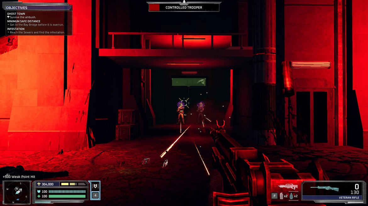 Där spelet däremot verkligen börjar komma till sin rätt är på de högre svårighetsgraderna. Jag brukar i regel spela spel på normal nivå, men här blir det snabbt tydligt att spelet mår bättre ju svårare du sätter det. Fienderna blir plötsligt betydligt mer skräckinjagande, då även de minsta krypen kan innebära döden efter bara ett par slag. Det gör att du konstant måste hålla dig i rörelse – något som i sin tur lyfter spelets största styrka: den intensiva skjutkänslan och känslan av panik när svärmar av insekter rusar mot dig, precis som i filmen. Värt att nämna är att svårighetsgraden inte kan ändras under en pågående spelomgång, så du behöver leva med den. Samtidigt gör det inte så värst mycket då varje nivå är relativt kort sett till tid. Det jämnar alltså ut sig.