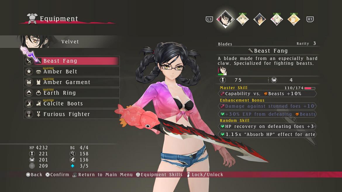 En annan aspekt när det kommer till stridssystemet är att spelaren kan stjäla Souls-poäng från sina fiender. Dessa går sedan att använda i strider och har spelaren samlat på sig upp till maximalt fem souls-poäng kan Velvet använda en så kallad Break-soul-färdighet för att genomföra en kraftfull specialattack. Denna strategi är mycket användbar när spelaren stöter på mer tufft motstånd som till exempel bossar. Spelaren kan även laga mat i spelet och anledningen till detta är att de lagade rätterna ger speciella fördelar som återställd hälsa eller unika strids-effekter som kan hjälpa spelaren i kommande strider. Det finns sex olika svårighetsgrader i spelet och de är Simple, Normal, Moderate, Hard, Evil och Chaos. En intressant detalj är att när jag dödade en speciell miniboss långt in i spelet låste jag upp svårighetsgraden evil.