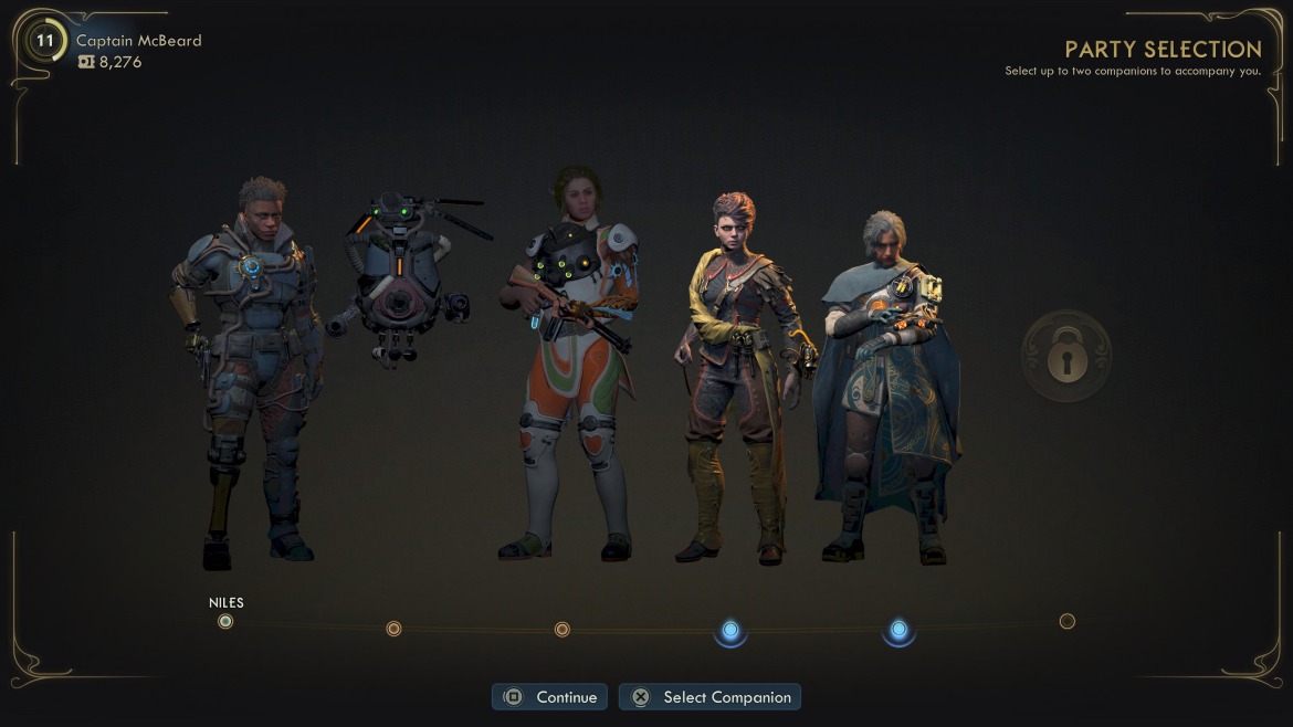Spelet ger mig möjligheten att få med mig sex stycken följeslagare men det är ingen självklarhet att dessa följer mig eller att jag ens hittar alla. När jag sedan förbereder mig på The Incognito för att ge mig ut på äventyr så kan jag välja att ta med två följare åt gången på uppdrag.