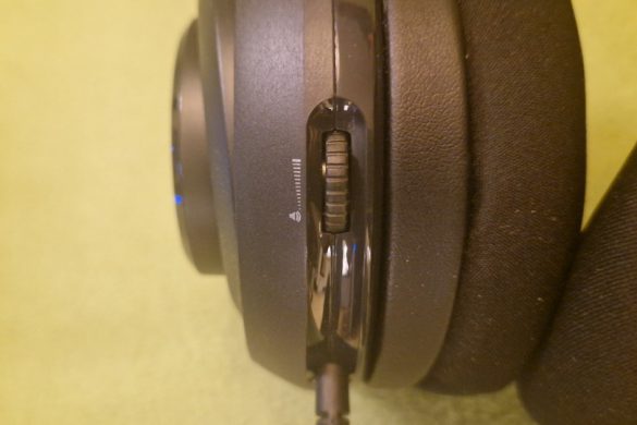 Utöver detta har vi den nedfällbara mikrofonen som sitter på den vänstra öronkåpan, på baksidan av den finner vi volymkontrollen via dess scrollhjul. Detta är allt vi behöver komma ihåg – inga knappar för andra funktioner, vilket jag finner skönt att inte behöva komma ihåg vilken knapp som gör vad. Jag byter dock friskt mellan olika gaming headset beroende på vilken plattform jag spelar på (väldigt mycket ett ”jag”-problem).