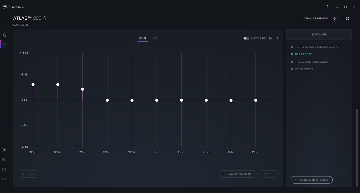 När det kommer till headset kommer vi alltid till det som alltid brukar dra ner lite av upplevelsen – dess mikrofon. Här får du i grundljudbilden vad du förväntar dig – du hörs tydligt men varken imponerar eller låter det bästa. Vad som däremot lyfter denna mikrofon är att du på PC kan utnyttja Turtle Beach programvara SWARM II (detta om du använder den medföljande USB-ljudadaptern) som ger dig EQ-inställningar och fyra redan förinställda profiler att välja mellan från start. Vad dessa fyra gör är att de kanske höjer upp bastonerna för att ge dig en fylligare röst, eller höjer mellanregistret och diskanterna för att din röst ska bryta sig igenom annat ljud tydligare. Du kan även skapa din egna EQ-profil baserat på hur du vill att du ska höras av andra.