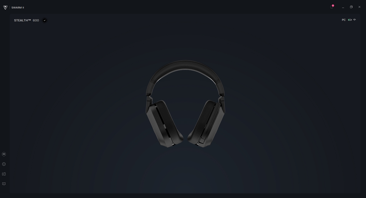 Nu går vi in mer på vad headsetet kommer med för olika program och vad det kan erbjuda för andra förmåner. Vi har exempelvis en imponerande batteritid på 80 timmar med snabbladdning, trådlös uppkopplingsförmåga både via den medhavda 2.4 kHz-dongeln och Bluetooth 5.2 som du lätt kan byta mellan via en av knapparna på den vänstra kåpan, samt AI-filtrering för din mikrofon som tar bort jobbiga ljud som hostningar eller brus. Sedan får vi en generös USB-A till USB-C kabel på två meter, som dock är i plast och inte väv. Allt detta är bitvis förväntade funktioner för ett headset som hamnar prismässigt kring 1 100 kr, förutom den imponerande batteritiden och generösa två meter långa sladd som medföljer.