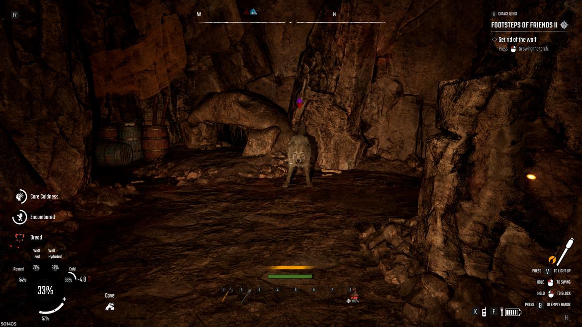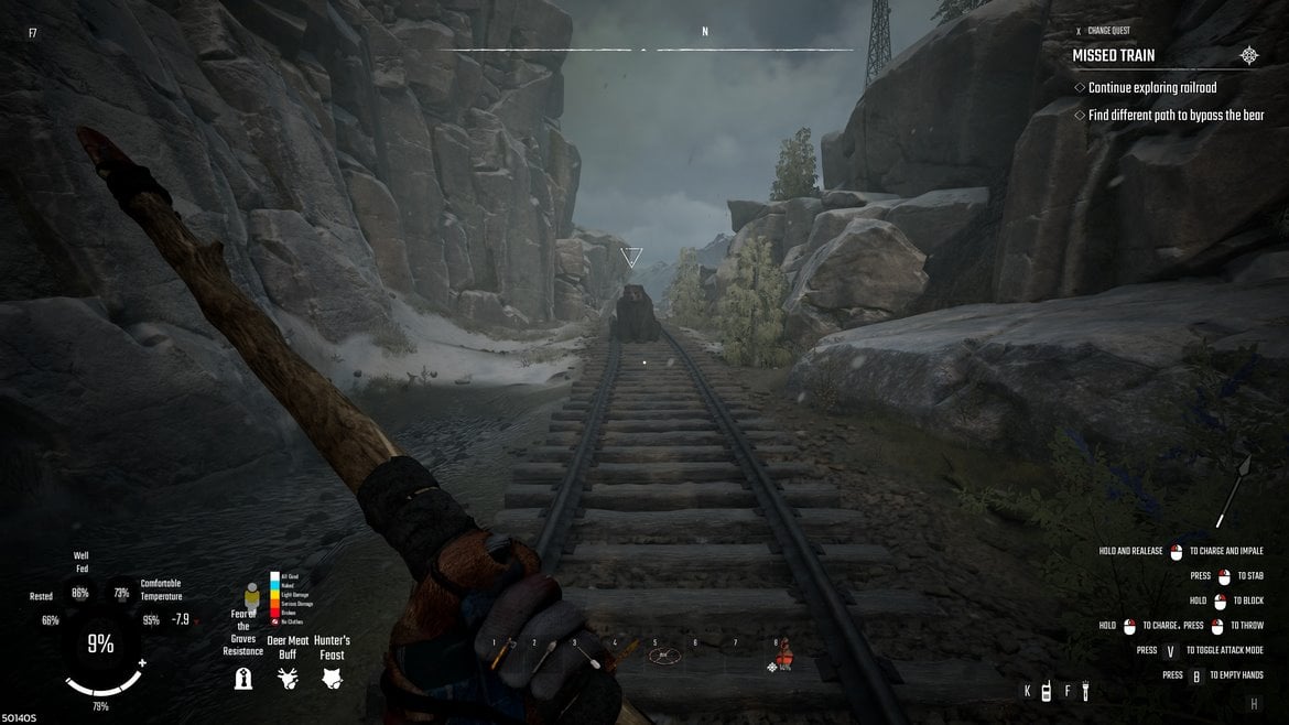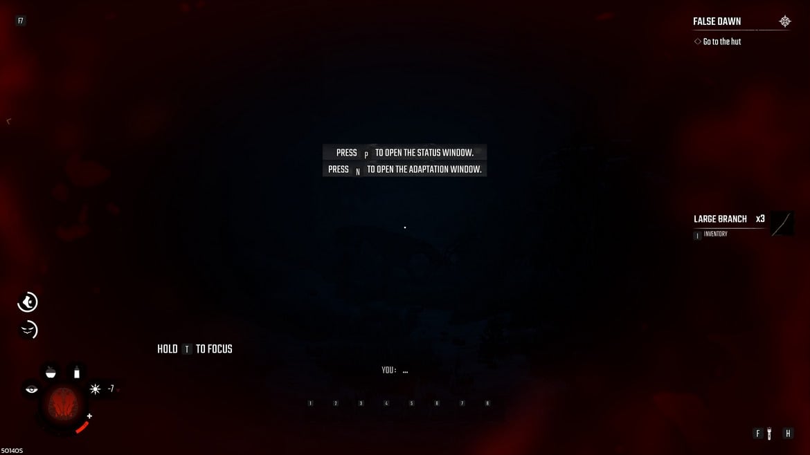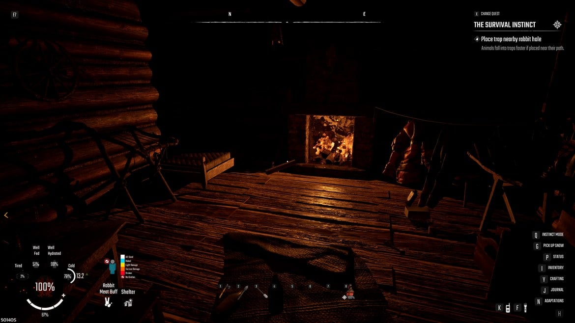 Är du ute i vildmarken finns det många saker att se upp för vilket utvecklarna har försökt få med i spelet, förutom köld, hunger och svält finns det en mängd mindre statusar som bör undvikas. Blir du våt behöver du torka dina kläder, äter du snö i desperation blir du kall in i märgen, hoppar du från en höjd kan du vricka foten. Dessa är enbart några och är hyfsat lätta att undvika och bota. Men min favorit är lukten, i din kamp för överlevnad kan du börja stinka. Detta innebär att djur märker dig lättare, och ännu värre än det är den irriterande guldbruna ramen din skärm får. Jag bryr mig inte om djuren märker mig lättare, men effekten är påträngande. Jag får väl gå och bada genom att hitta vatten, ta av mig alla kläder manuellt och sedan hålla E knappen för att få äran att beskåda en arm strykas med vatten i närmst en minut.