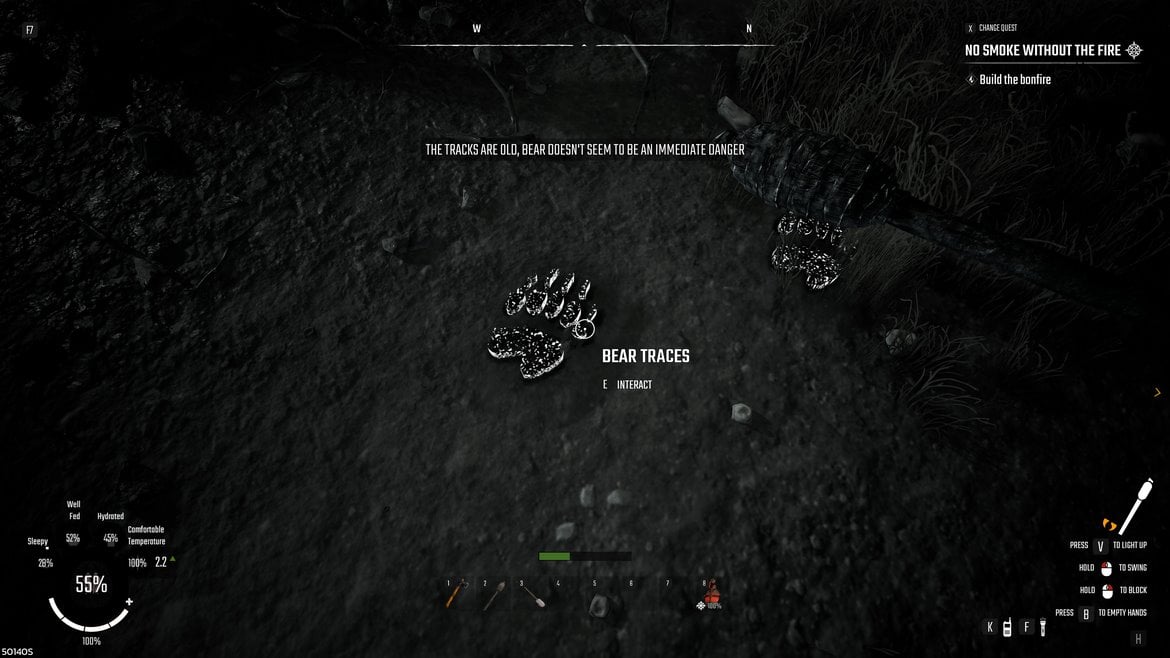 Världen är karg och ser bitvis bra ut, berättelsen som följs är i mina egna ord ”helt ok antar jag”. Det finns gånger när den belyser hur galen din karaktär är när han börjar prata med döda, andra gånger känns den påtvingad. Det finns ett tillfälle när du i historien behöver gå ut på en otroligt märkbart trasig repbro, varpå du faller och karaktären är förvånad. Den fiende som är mest prominent är björnen, till och med för en björn är den stor. En enorm best vars fotspår du kan hitta i naturen, vid en närmare studie av dem kan du bedöma huruvida björnen är nära och ett hot eller inte. Inte illa för någon som uttalat inte vet hur du överlever i vildmarken.