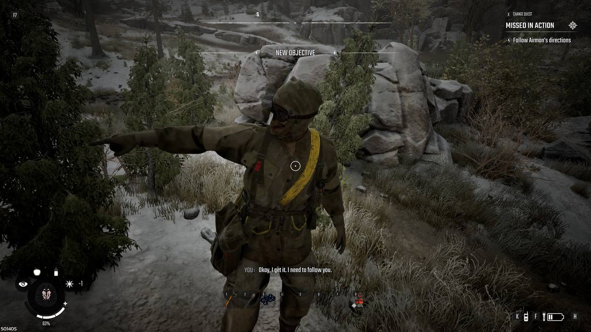 När jag samlade resurser och utforskade världen för att ta mig vidare i handlingen märkte jag återigen hur jakten på realism inte riktigt klickade för mig. Jag fick genomlida den långsammaste repklättringen jag någonsin haft att göra med, realistiskt? Ja kanske men otroligt långtråkigt. Det som visade på en viss dissonans i ”realismen” kom genom klättrande uppför kanter, vissa klippor och dylikt är gulmarkerade för att påvisa att det går att klättra upp. Men nästintill identiska klippor och hinder gick inte. Det går inte att klättra över en mindre stenmur vilket gör att du får gå runt vilket också bara tar tid.