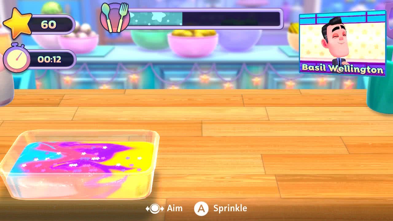 På tal om minispelen är de enkla, men samtidigt irriterande. De går alla ut på samma sak, att tillaga en maträtt. Det gäller då att vispa, måtta, toppa samt hålla koll på ugnen genom de olika minispelen som jag får spela. Det gäller att snurra på spakar, trycka på knappar i rätt ordning, hålla takten till musiken eller att sikta med strösslet på en maträtt som ständigt flyttar på sig. Det går att göra det här enklare eller svårare beroende på vad man känner för då varje maträtt har fyra svårighetsgrader att välja mellan för att genomföra dem. Det går från att göra maten i lugn och ro till att göra det på tid, bli av med ledtrådar om vad som ska göras till att bara göra maten helt perfekt. Under tiden jag spelar får jag stundvis lära mig nya metoder för att laga mat, som att hacka grönsaker eller att hur jag använder en mixer. Det är rätt mycket som jag ska lära mig för alla de olika maträtterna som finns i spelet. Först får jag göra regnbågsvåfflor, när jag är klar med dem får jag lära mig flera olika tillagningsmetoder som i sin tur låter mig laga fler rätter. Jag kan inte försöka mig på någon av de nya rätterna utan att ha gått igenom alla nya sätt att tillaga maten på, vilket är lite irriterande men samtidigt uppskattar jag att utvecklarna vill att jag ska veta vad jag gör.
